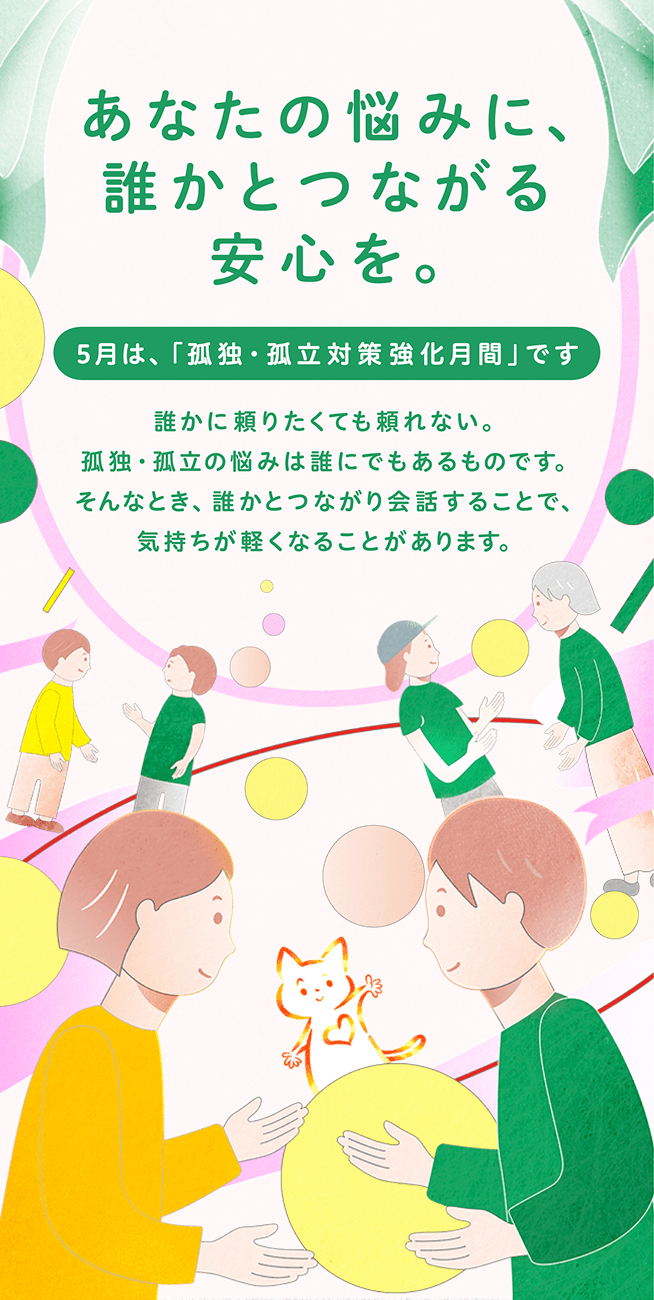 既存の相談窓口が閉まるゴールデンウィークの期間中、悩みや困り事を抱える方がどなたでも利用できる「孤独・孤立相談ダイヤル」を開設しました。